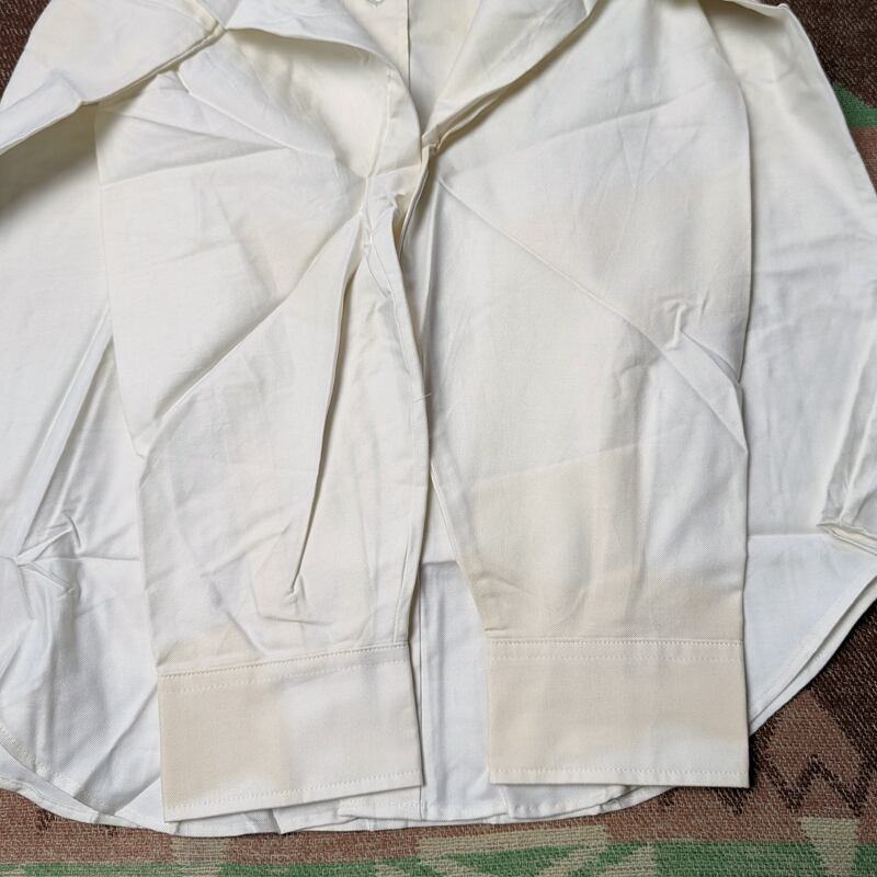 袋入りデッドストック。経年のシミ汚れがやや見られますが、白ですので漂白も行いやすくすっきり真っ白にできると思いますので特に問題ではないと思います。袋は若干のダメージ等あります。