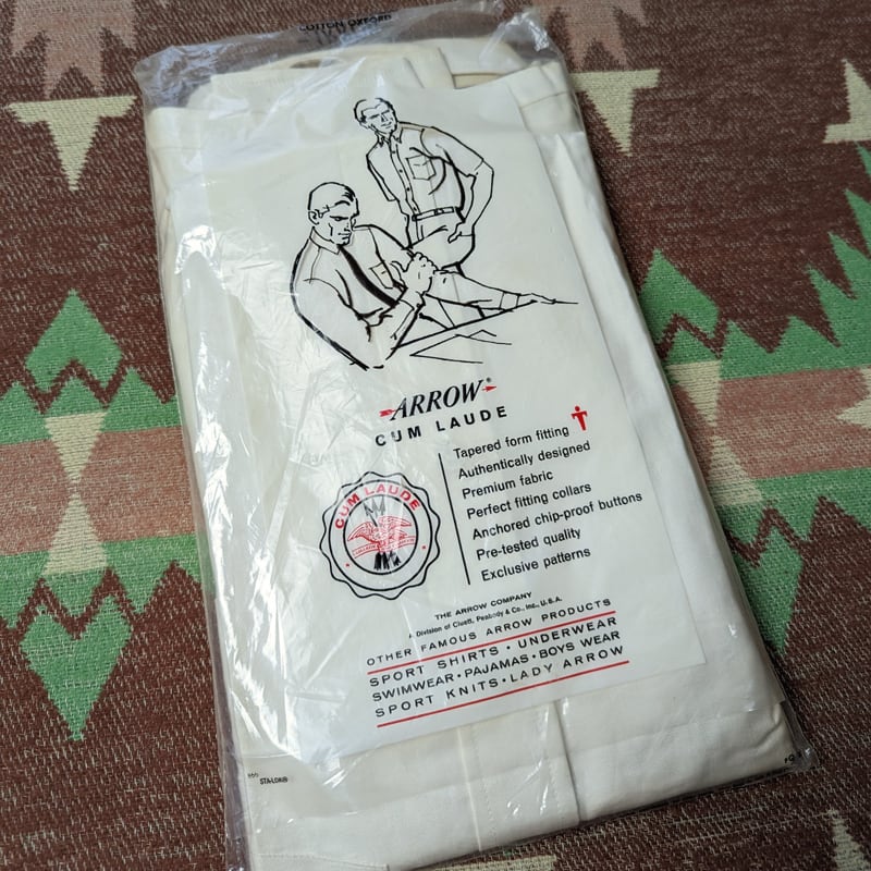 1960s ARROW CUM LAUDE White Oxford B/D Shirt DEAD-STOCK