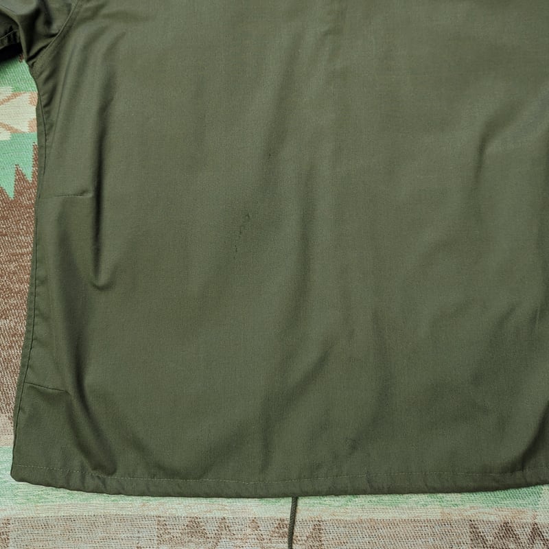 ほんの少し着用されていますが、水に通っていない、ハリ・コシのあるパリっとした状態です。袖先や背中・腰に若干のシミ汚れは見られましたが、クリーニングにより軽減されると思いますし、現状でもひどく目立つものではありません。全体的な印象としてはほぼデッドストックに感じられる極上コンディションです。