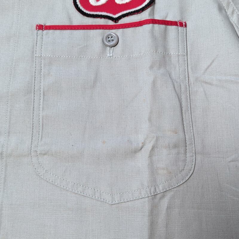 デッドストック。ポケット等に若干のシミ汚れは見られますが、洗っていくうちに薄れていくと思いますし、ワークシャツですので気にせず着られる程度のものと思います。ひどいヤケ等のない良好なコンディションです。
