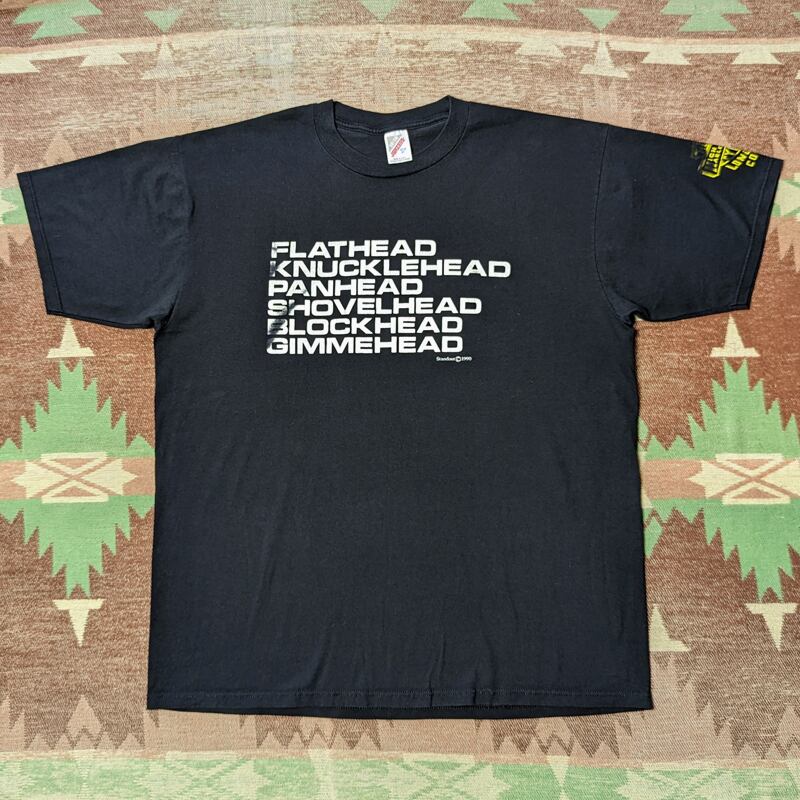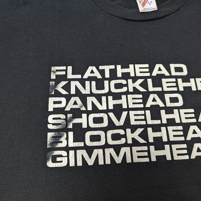 文字中心のプリント(c1990)、背中や袖のロゴもかっこよく、全体のバランスがとても良いハーレーTです。