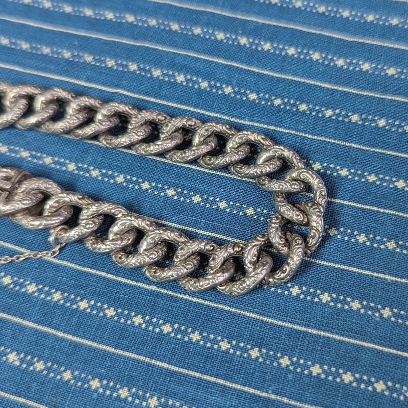 チェーンは装飾が施された面とソリッド面の2サイド、見た目の割にやや軽量に感じますので、おそらく中空のコマだと思います。当時としては手の込んだ意匠であったと思われます。