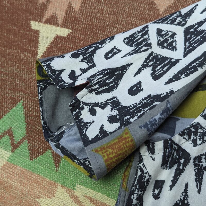 60s Excello FLEUR DE LIS Print Cotton Box Shirt (M)