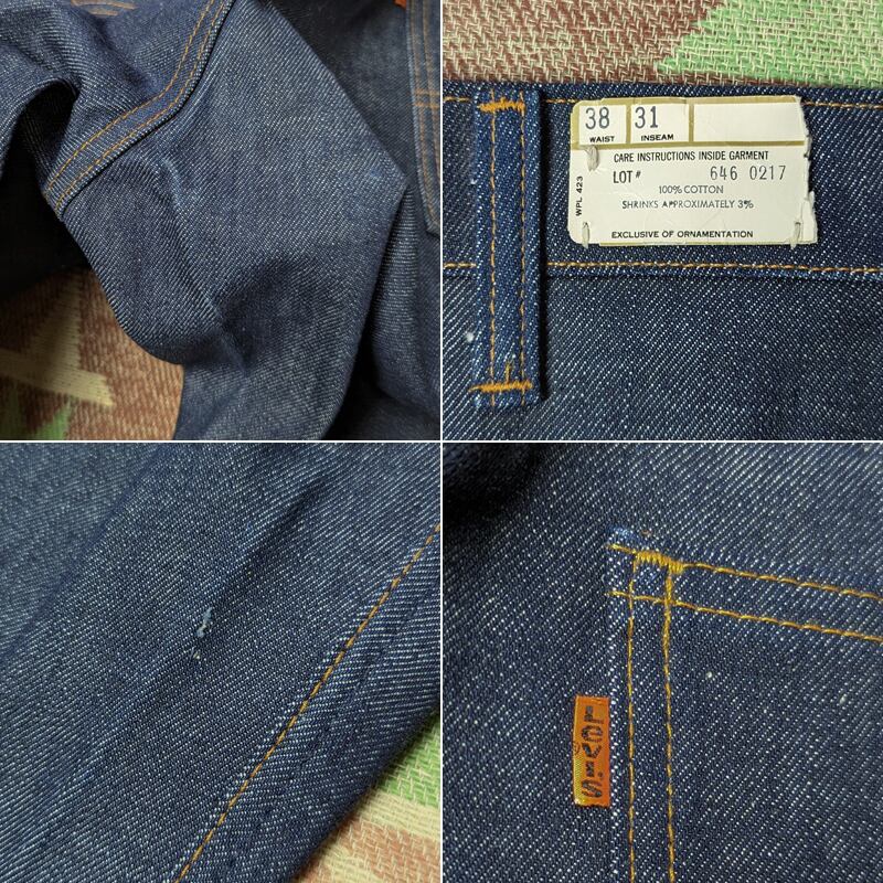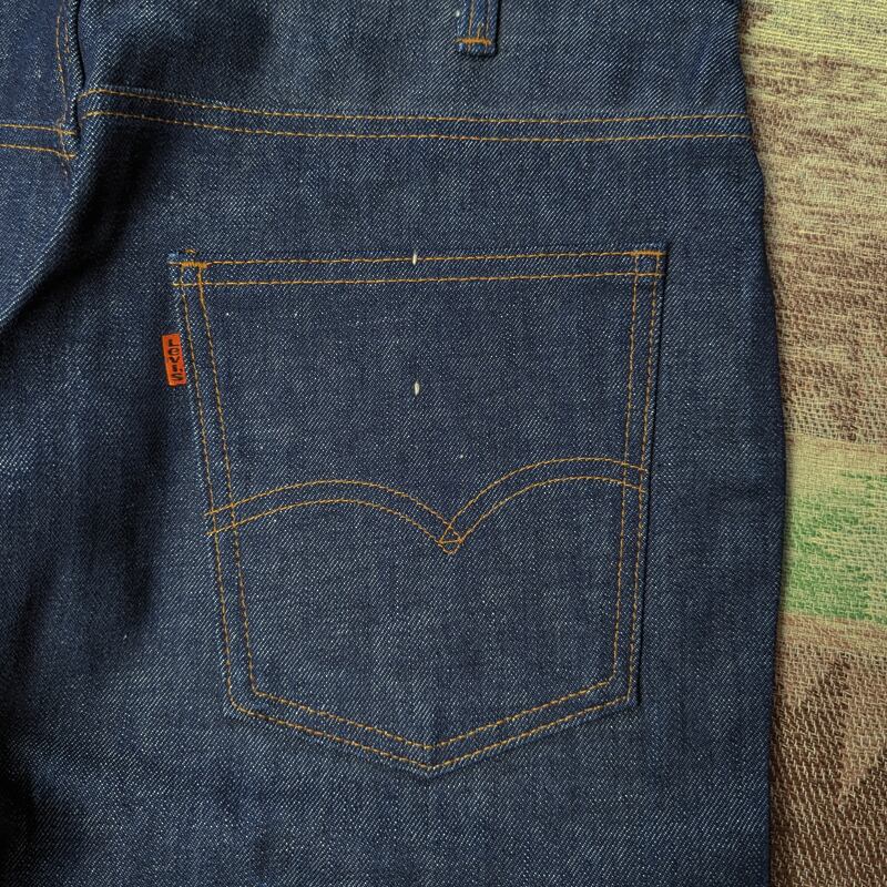 デッドストック。フラッシャーとサイズ表記タグチケット部分欠損。左内太もも辺りに小キズ、ヒップ下にわずかな擦れ色落ちは見られましたが、目立つヤケ等のない良好なコンディションです。