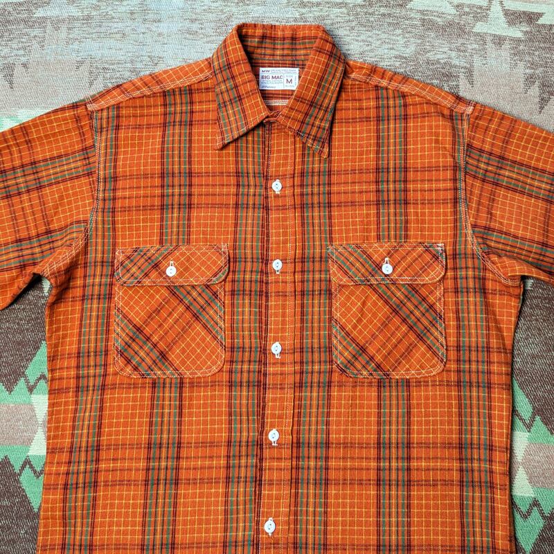 70s BIG MAC Orange Plaid Flannel Shirt (M) DEAD-STOCK