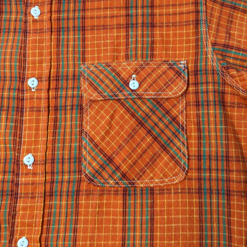 ミディアムウェイト(ヘビーネルとプリントネルの間くらいの生地感)、ビタミンカラーのオレンジ基調チェックも最高です。