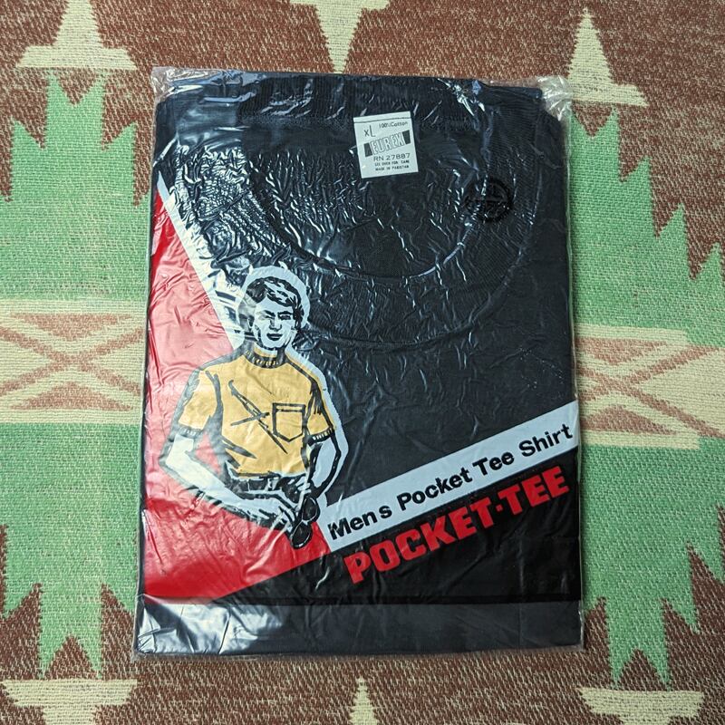 70s~ EUREX Pocket T-Shirt BLACK (XL) DEAD-STOCK