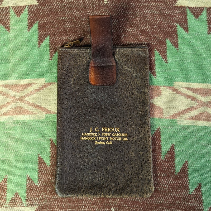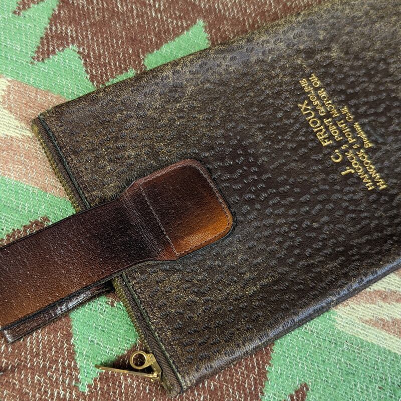 1930s Brown Leather Deposit Bag w/Padlock Talon Zipper