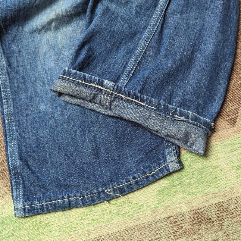 膝・裾・ヒップを中心にダメージ、膝と股下にリペア、そのほか擦り切れやステッチ抜け、シミ汚れなど見られます。着用される場合はリペアや補強が必要と思いますが、ディスプレイピースやコレクションとしては特に問題なく納得できるコンディションと思います。