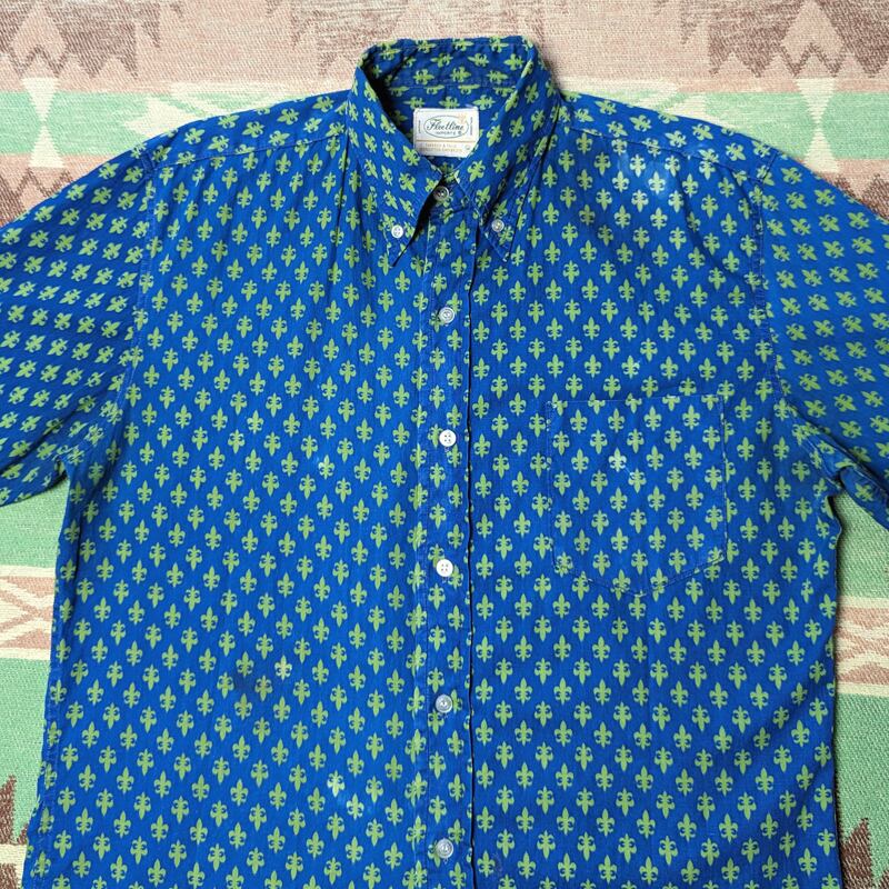60s Fleetline FLEUR DE LIS Print Cotton B/D Shirt (M)