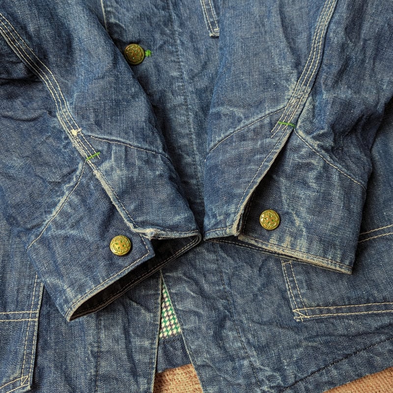 袖先を中心に擦れ色落ちは見られるものの、使用感少なく良好なコンディションです。バリっとした生地感でウォッシュ回数も数える程度と思われます。