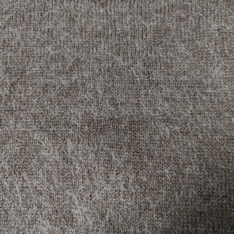 密度があるボサボサの毛足のタイプではなく、白い長い毛が混ざったふんわり柔らかな風合いのニットです。