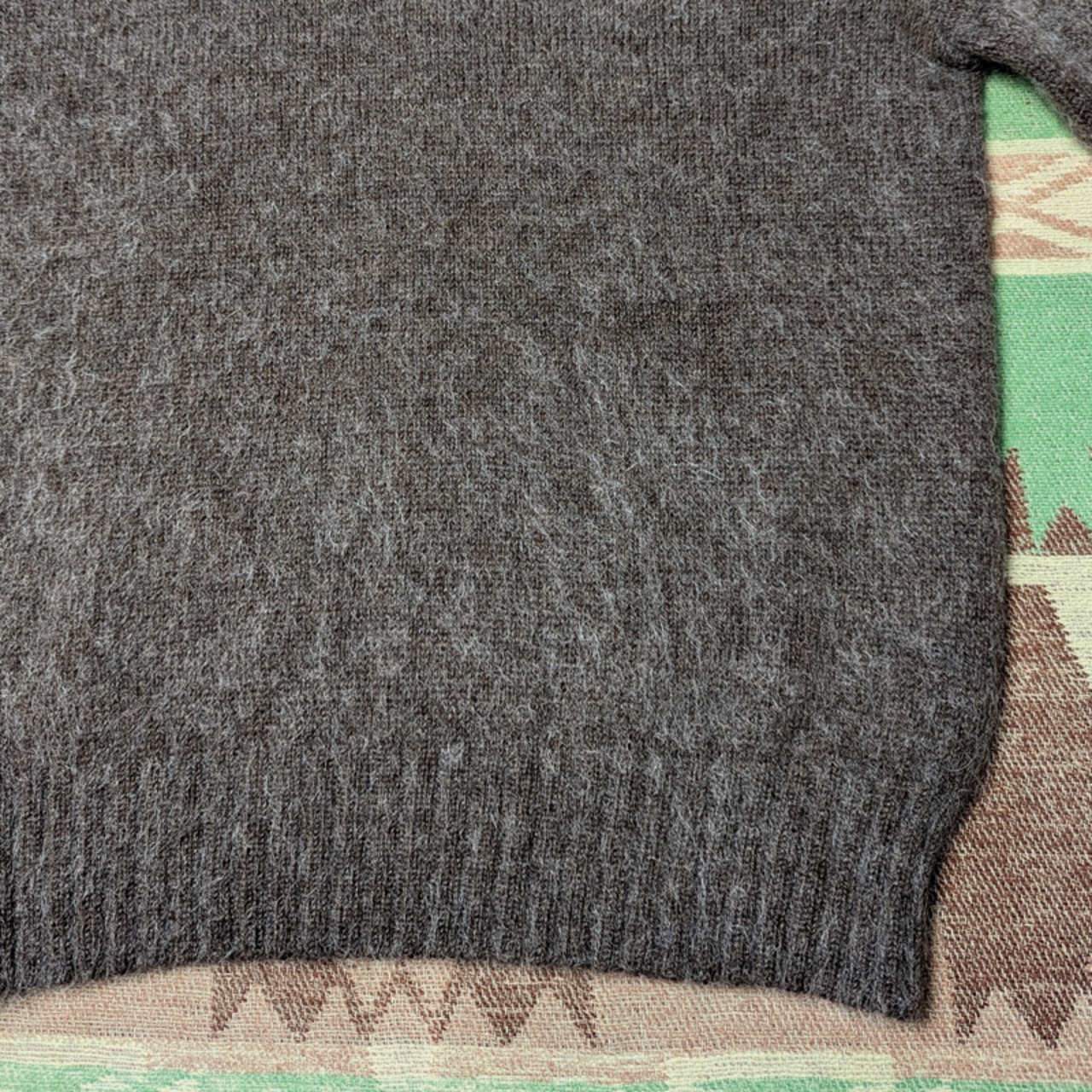 左腹と裾に手縫いリペア、ところどころ白い毛が薄くまだらに見える部分はありますが、古着慣れされた方でしたら特に問題なく着られる良好なコンディションと思います。