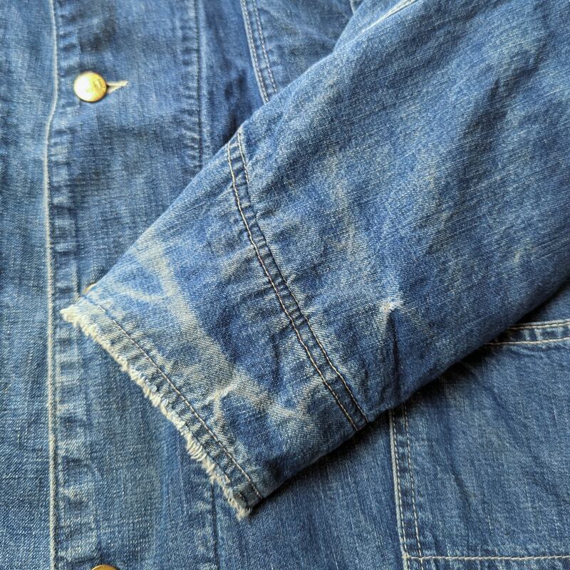 袖先に擦れ、ポケット等ステッチ抜け、胸や袖等を中心にシミ汚れなど見られますが、大きなダメージはなく特に問題のない良い状態です。