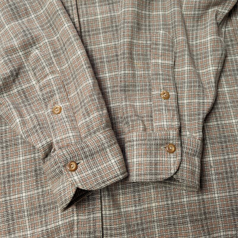 グレンチェックぽいウール生地。ガンクラブのようなクラシカルなアウトドア ハンティング テイストにらしさが感じられます。