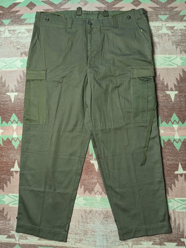 M43(M45)の余剰在庫をM51にモディファイされた個体になります。カーゴポケット・サイドアジャスター・サスペンダーボタン追加。