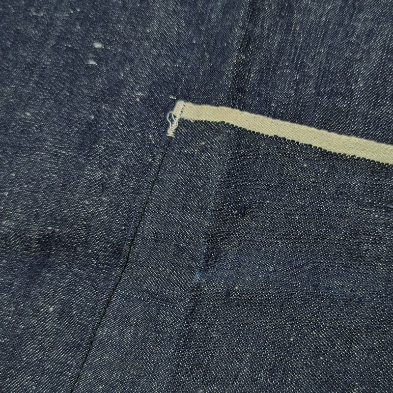 ブランド不明ではありますが、デニム生地がすごいです。大戦モデルのようにどす黒い色で粗くネップ感があります。縦落ちもかなり激しい様子がうかがえますし、使い込んでいくと凄まじい色落ちと雰囲気になっていくと期待できます。