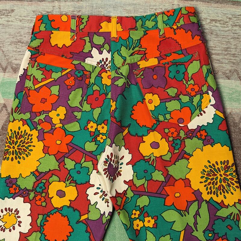 ヒッピー/ポップアート/ピーターマックス調の花柄プリント。