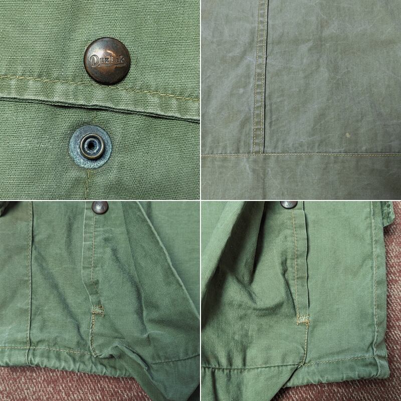 左下ポケット横に小穴・背面左アームホールに擦り切れ・内側フランネル生地にダメージ、スナップ錆びは見られますが、大きな破れなどのダメージはありません。襟ぐり等ところどころステッチ浮きがあります。ポケット端のステッチ抜けはリペアしてあります。