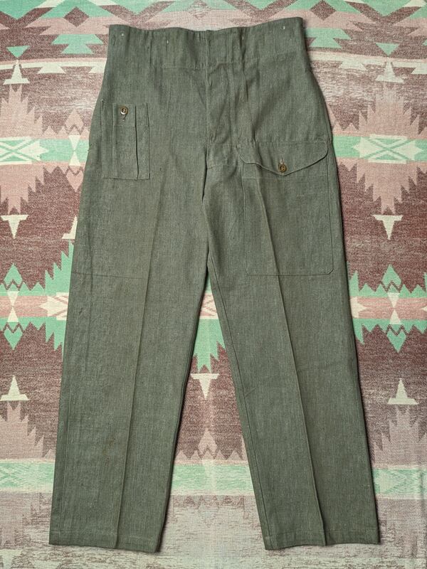 50s British ARMY OVERALLS Green Denim Trousers (W37) Never Washed