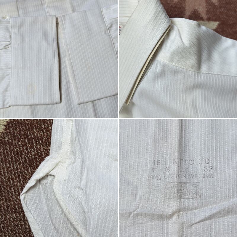 デッドストック。黄ばみ・シミ汚れは見られますが、白ですので漂白も行いやすくすっきり真っ白にできると思いますので特に問題ではないと思います。