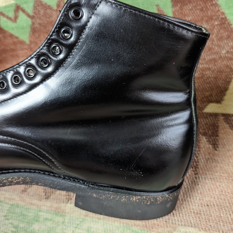 デッドストック。若干のくすみや擦れ・生産時の接着剤付着など見られますが、クリーム等である程度隠せますしワークブーツですので気にせず履けるものと思います。特に問題のないきれいな状態です。