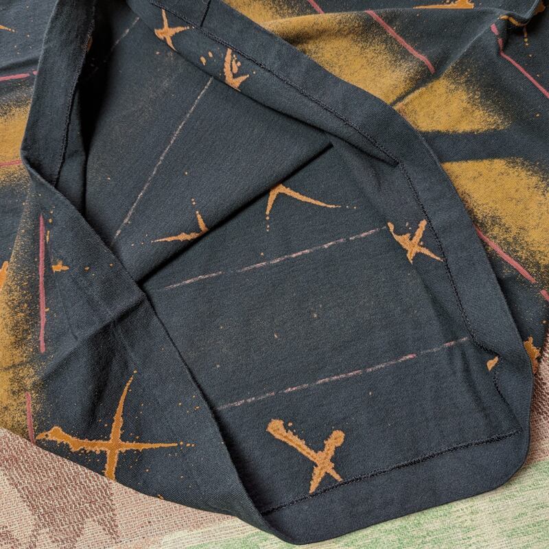 ボーダーと“×”の総柄パターン。抜染と思われ、手作業感のあるムラが良い味わいになっています。