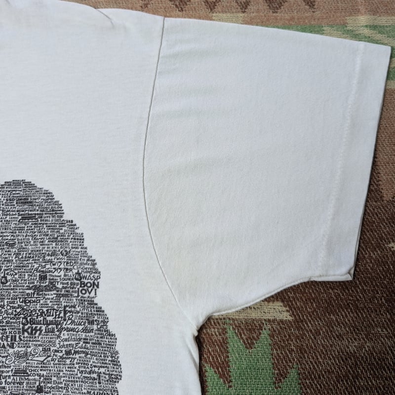 一目でわかるようなバンドTに比べると着こなしやすく、さりげなくロック好きの心をくすぐる個人的名作です。なかなかTシャツでは見つけられない幅広い年代やジャンルのバンド等も名を連ねていますので、そういった視点でも満足感が得られると思います。