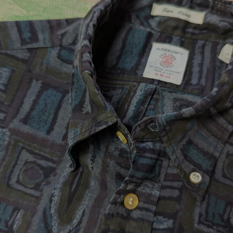 60s ARROW CUM LAUDE Tapa-Prints Cotton B/D Shirt (M)