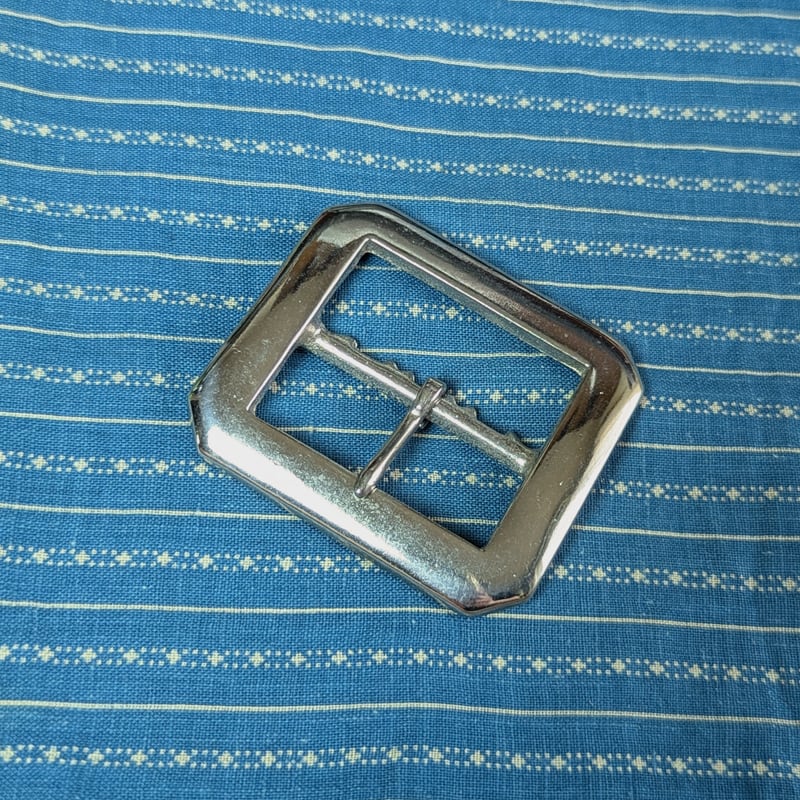 鉄製ニッケルプレート。ピンの位置は移動可能です。同社のバックルを所有している方でしたら、ピンを移してダブルにすることもできます。