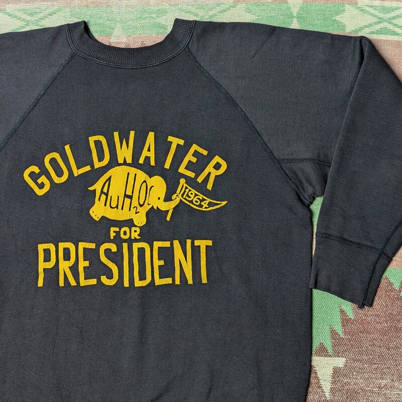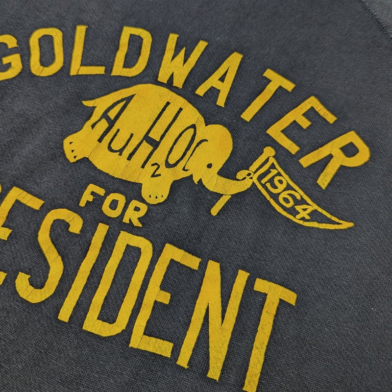 1964年ゴールドウォーター選挙キャンペーンのプリント。OLDスウェットで年号が入るケースは少なく珍しいと思います。