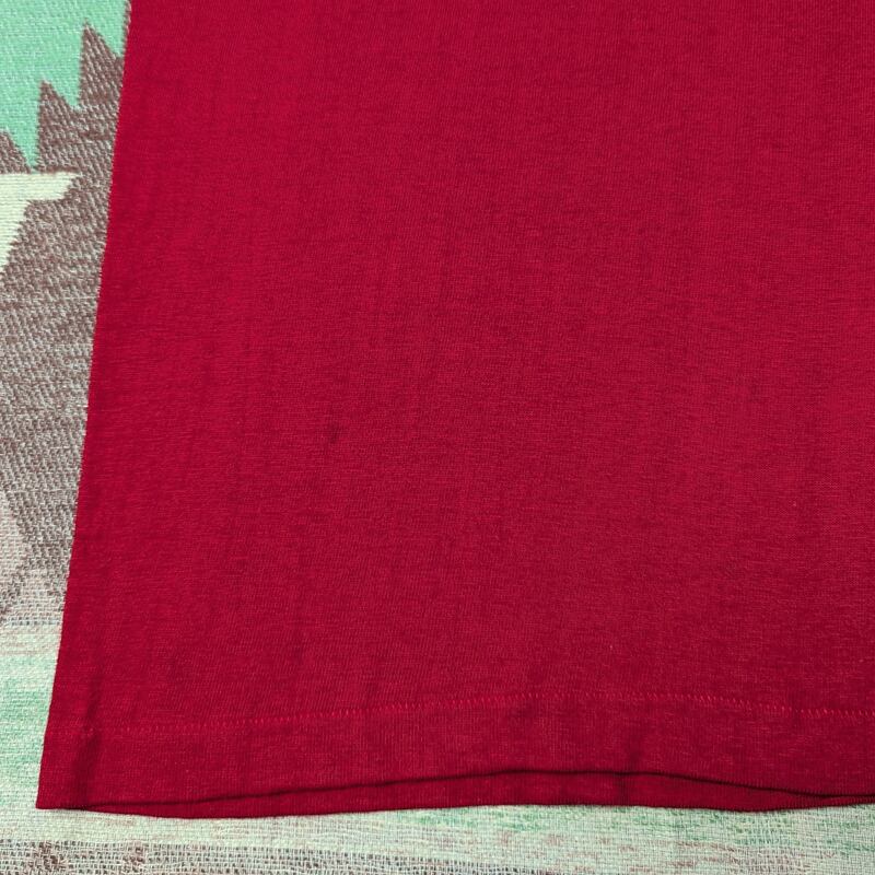 未洗いの状態からワンウォッシュ。胸・肩・裾付近などにシミが見られますが、着込んでいくとより目立たなくなっていくと思いますし、現状でも気にせず着られる方は多くいらっしゃると思います。袖プリントに赤い部分がありますが、しばしば見られるものでご理解のある方でしたら問題ではないでしょう。
